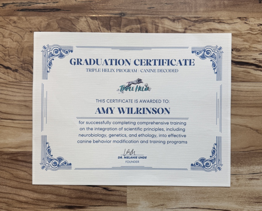 Learning never ends with dogs, thanks to the technology available today I have had the opportunity to work and troubleshoot with trainers across the world. I have attended seminars both in person and online with some of the top trainers in all different fields including behavior modification, competitive obedience, canine cognition, detection, bitework, tracking and more. I have my canine first aid, certified through the Certification Council for Professional Dog Trainers, and have completed multiple courses as well.